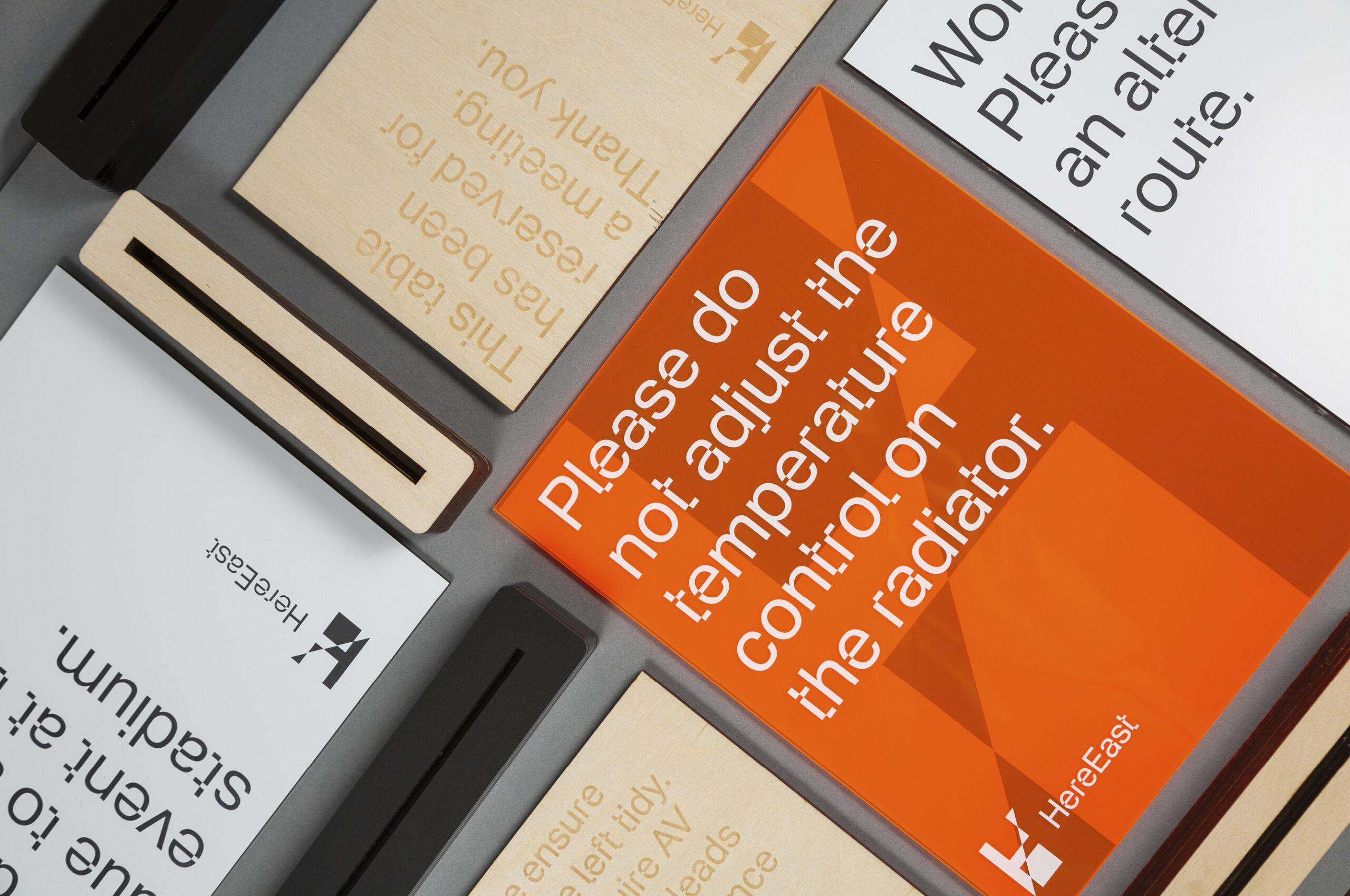 WeDesign have worked alongside Here East for over 10 years, supporting the ongoing delivery of physical signage and placemaking across the campus. Our role has been to apply and evolve the existing brand in a consistent and considered way, ensuring that new elements sit naturally within the wider identity.